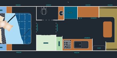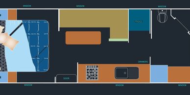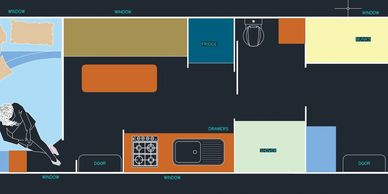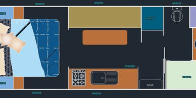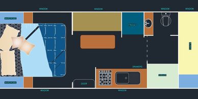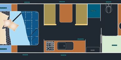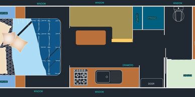 With large windows for natural light and a smooth, open flow throughout the van, this floorplan is perfect for couples or small families seeking comfort, flexibility, and modern living on the road.